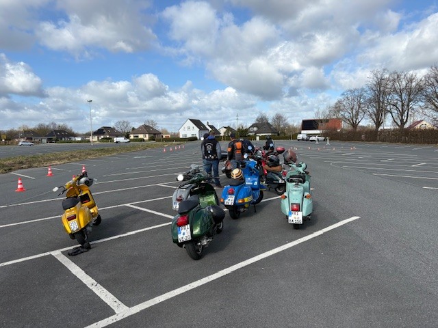 Der Wilhelmshavener Vespa- und 2 Takt Stammtisch hat pünktlich zum Saisonstart sein Fahrsicherheitstraining angeboten. Bei sonnigen 10 Grad und doch recht kühlem Wind starteten knapp 20 Fahrerinnen und Fahrer den recht anspruchsvollen Parkour. Ob Ausweichmanöver, 8er Kurven, Wippe und diverse 1-Hand Fahrprüfungen - die Runde hatte es in sich! Bei der ersten Fahrt hat jeder gemerkt, dass man über den Winter schon recht einrostet und somit wurde es bei jeder weiteren Fahrt immer besser. Übung macht den Meister und man geht mit einem gutem Gefühl in die neue Saison. Gegen Mittag wurde auf einem alten Fabrikgelände stilvoll bei guten Benzingesprächen angegrillt. Das war ein richtig schönes Treffen - Vielen Dank für die Einladung ... Nächstes Jahr sehr gerne wieder!