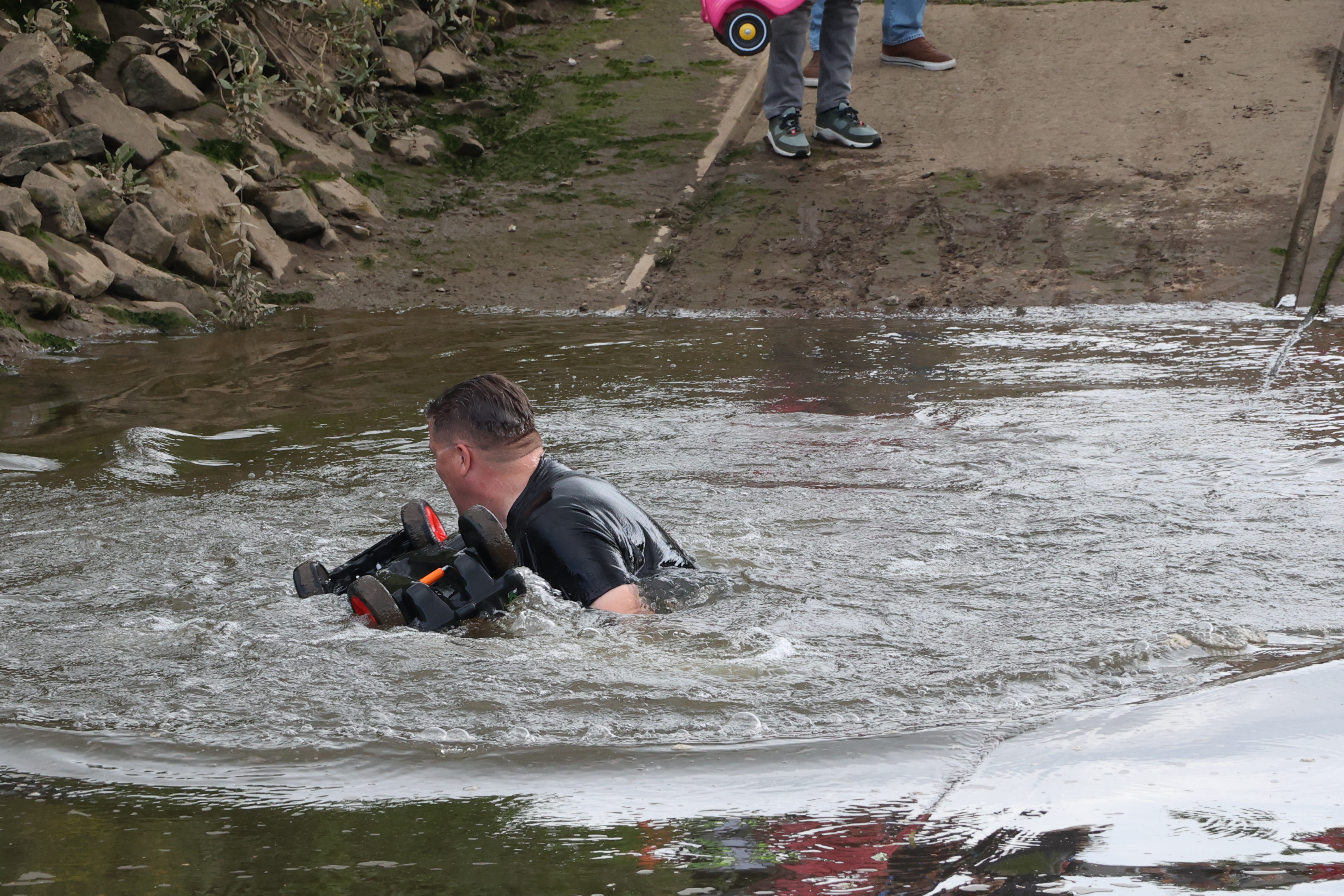 Fungames? Klaro, bei uns sind die beiden Bobby-Cars ja schon gesetzt. Also Klamotten wechseln und ab zur Slippanlage. Immer paarweise gehts los, Ziel war es, kurz vor der Weser zu stoppen. Wer am nächsten an der Wasserkante ist, hat gewonnen, und wer nicht stoppen konnte, hat verloren und war nass - aber Sieger der Herzen. Vielleicht schauen wir mal, ob wir da fürs nächste mal `ne Scheibenbremse nachrüsten und eingetragen bekommen. Im Anschluss kurz frisch machen, ne Kleinigkeit essen und ab in den Soul Nigther mit DJ Flemo und DJ Cacey. Das war `ne Mega Party – feinster tanzbarer Soul lockte auch viele zusätzliche Abendgäste an, die nur zum Tanzen und Schnacken gekommen waren. Auch hier um 22 Uhr wieder Fenster zu und….